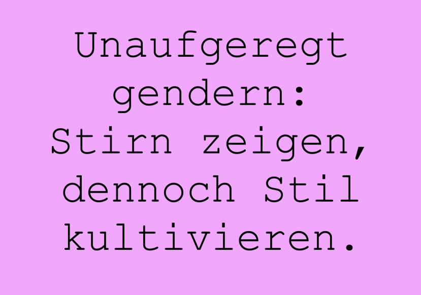 Unaufgeregt gendern: Stirn zeigen, dennoch Stil kultivieren.