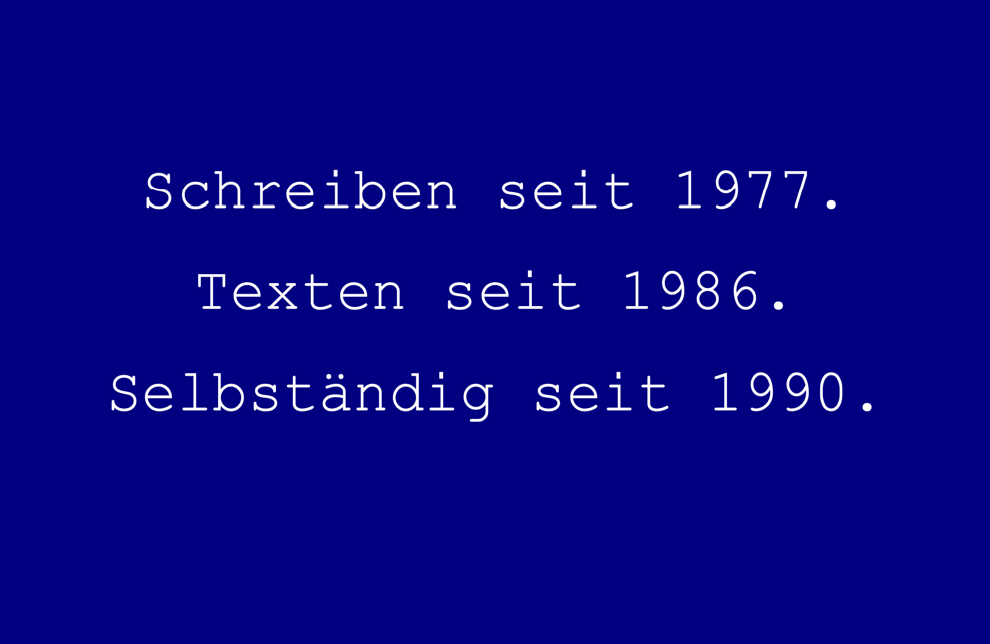 Schreiben seit 1977. Texten seit 1986. Selbständig seit 1990.